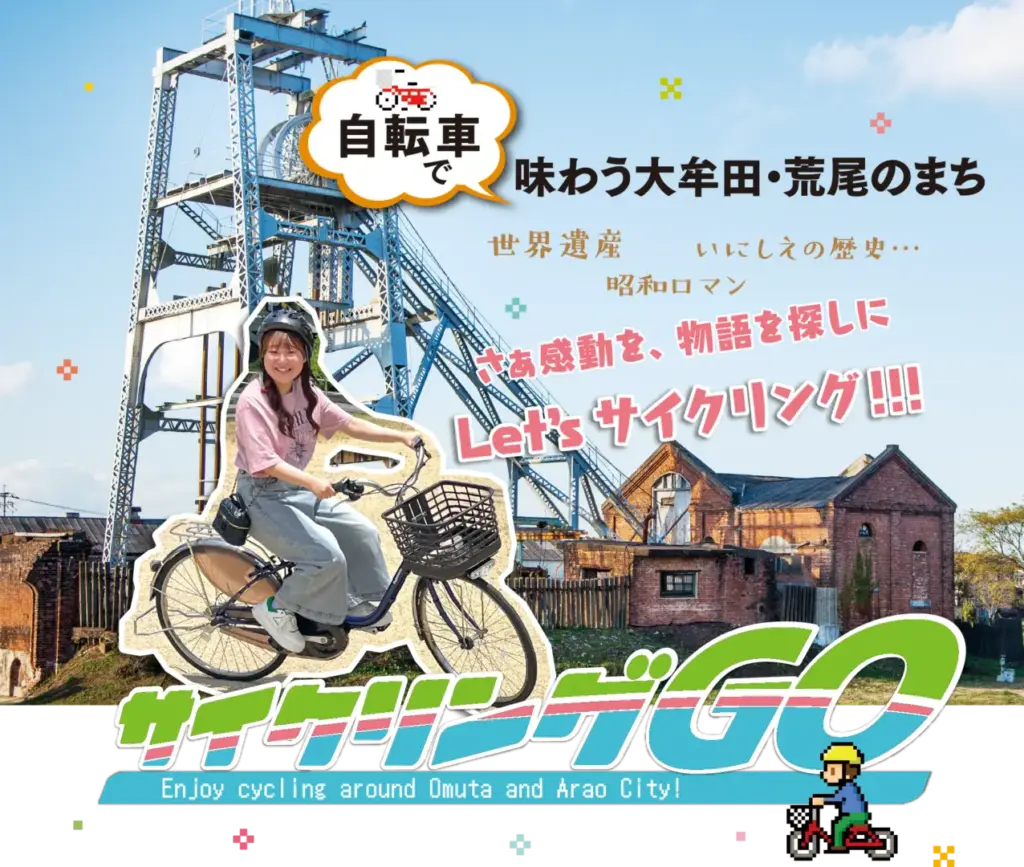 鉄道を利用した個人・外国人の来訪者に、大牟田、荒尾のまちを自転車で楽しんでもらおうと、推薦コースを作りました。地元の方にもお役に立つはず。さぁ、お宝光景、物語、感動を探しにでかけましょう!