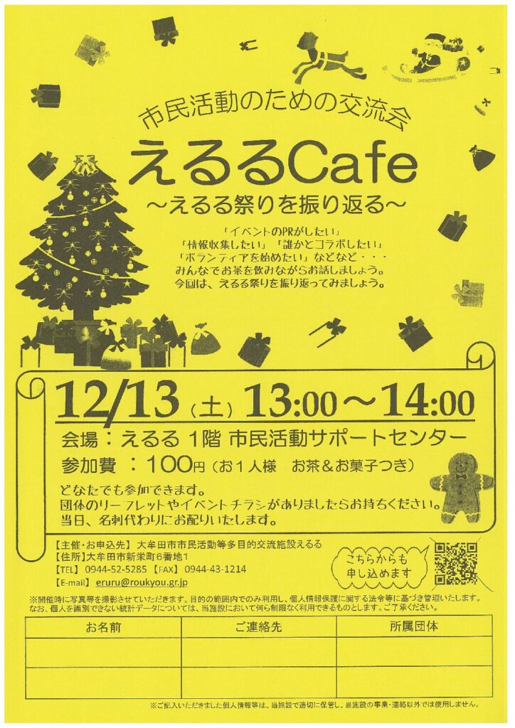 市民活動のための交流会 えるるCafe~えるる祭りを振り返る~ 「イベントのPRがしたい」、「情報収集がしたい」、「誰かとコラボしたい」、「ボランティアを始めた…